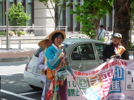 写真は、平井さん事務局の国民平和大行進、県庁での集会、2010年7月